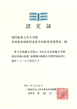 専門職大学院(教職大学院等)を置く大学は、当該専門職大学院の設置の目的に照らし、教育課程、教員組織その他教育研究活動の状況に関し、5年以内ごとに、認証評価機関の実施する評価を受けることが義務付けられています。