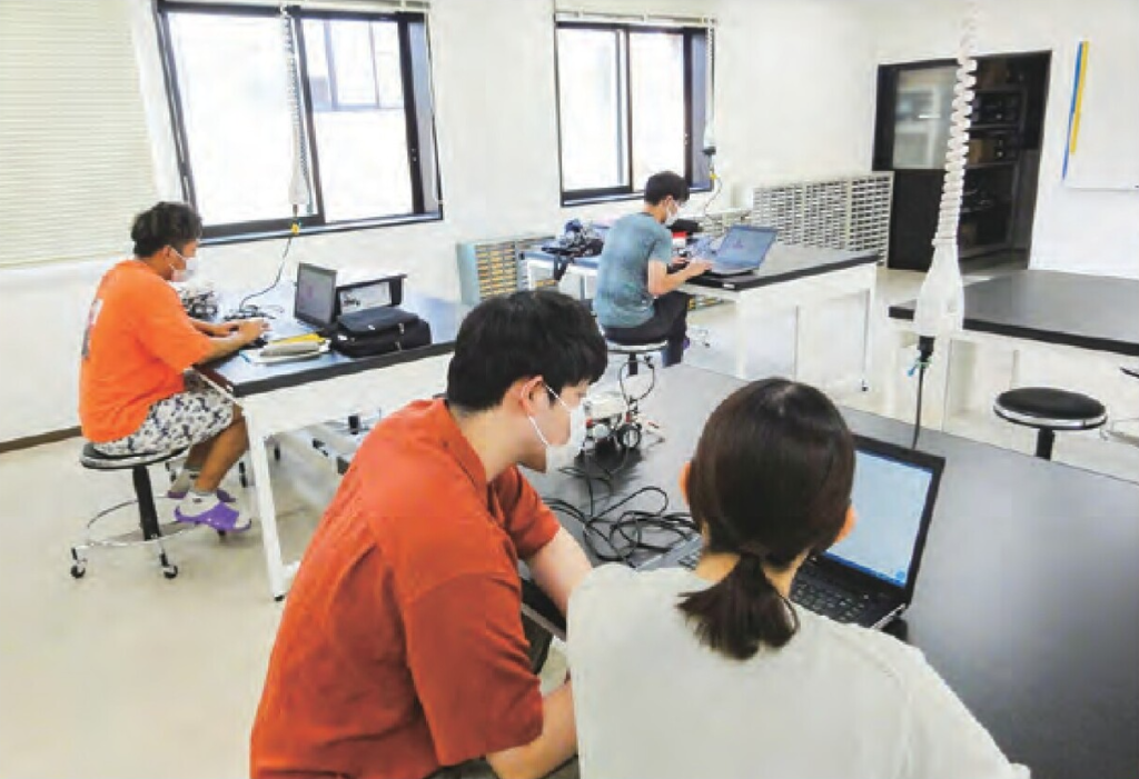 技術科教育コースでは、「電気」「材料加工」「情報」「機械」「栽培」など専門的な技術を様々な実習を通して幅広く学ぶことができます。一緒に学ぶ友達や先輩との交流も多く、情報の授業ではプログラムや回路などを考え、意見を交換し技術を高め合っています。また、履修によって中学校の技術と小学校の教員免許のほかに、高校の情報や工業の免許も取得することができることも魅力の1つだと思います。